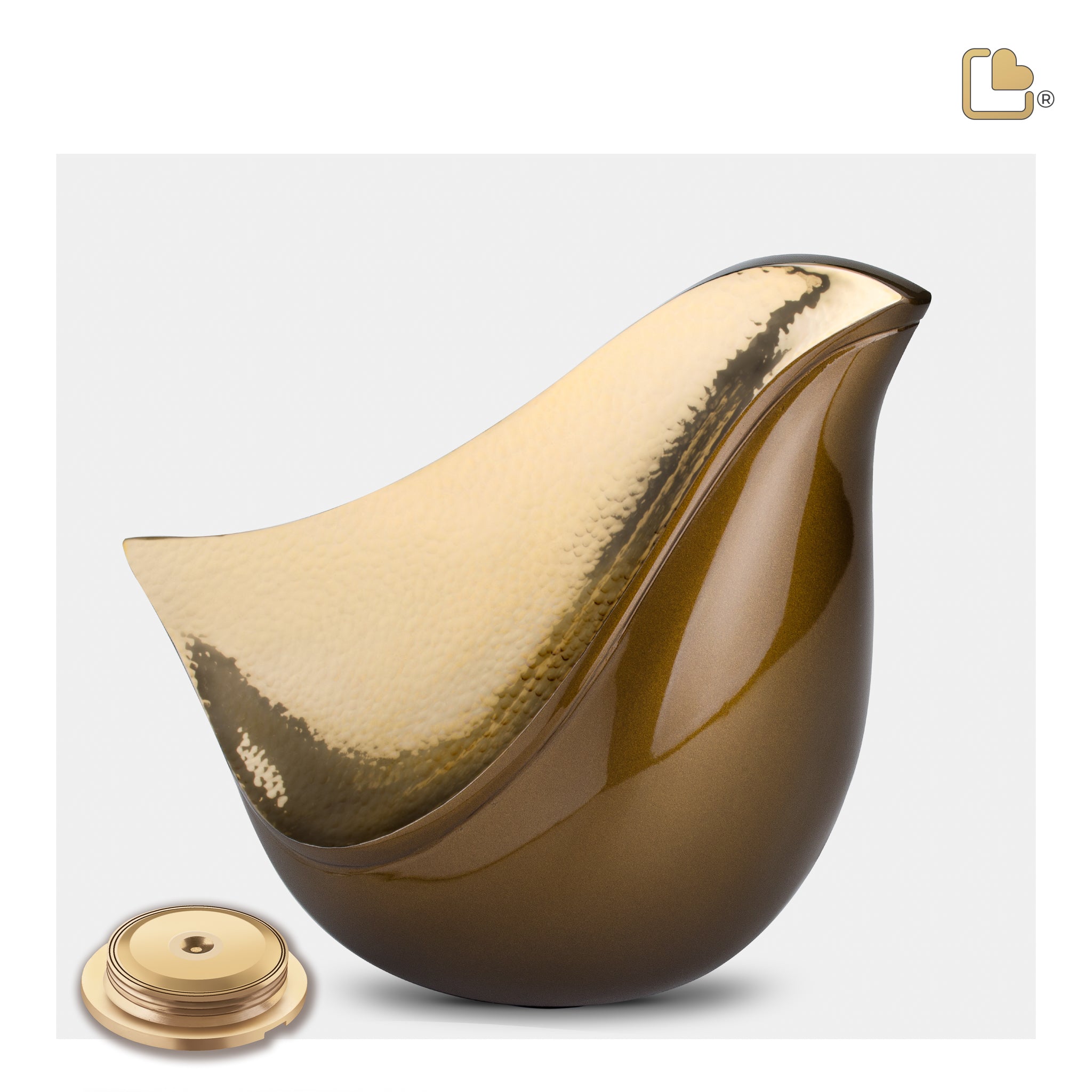 The Adult LoveBird Bronze is a unique, special, and sophisticated cremation urnthat is crafted in a non-traditional form, that of an elegant and graceful bird. The style of the urn is modern and eye-catching, with a rounded body and delicately pointed beak and tail to distinguish it’s features.