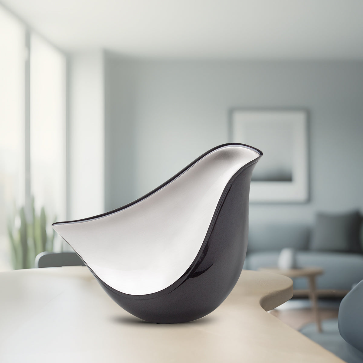 The Adult LoveBird Midnight is a cremation urn that is incredibly elegant and the perfect piece for a contemporary styled home. The design of the piece is modern, graceful, and simplistic.